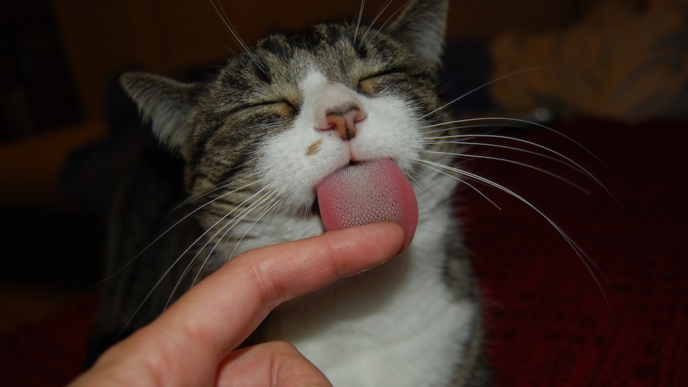 Katzenzungen sind mit sogenannten Papillen besetzt – hornartigen, nach hinten gerichteten Häkchen. Diese helfen nicht nur bei der Fellpflege, sondern können auch Essensreste effizient aufnehmen. Deshalb fühlt sich das Ablecken durch eine Katze oft recht rau an.